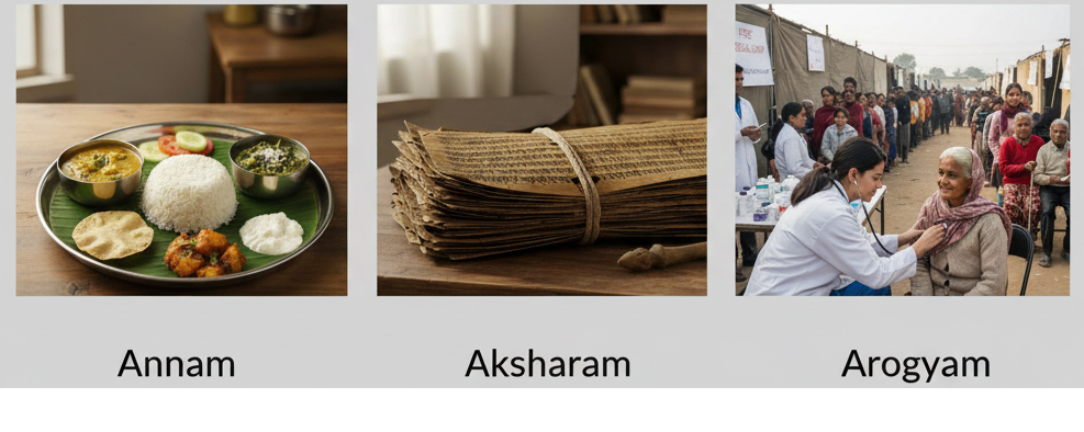 While the Trusts pursue a range of objectives, their foremost focus remains on Nutritious Food (Annam), Value Education (Aksharam), and Well Being (Arogyam).